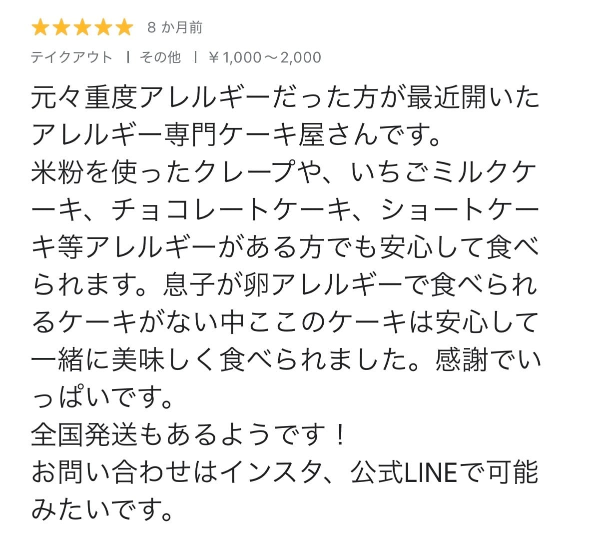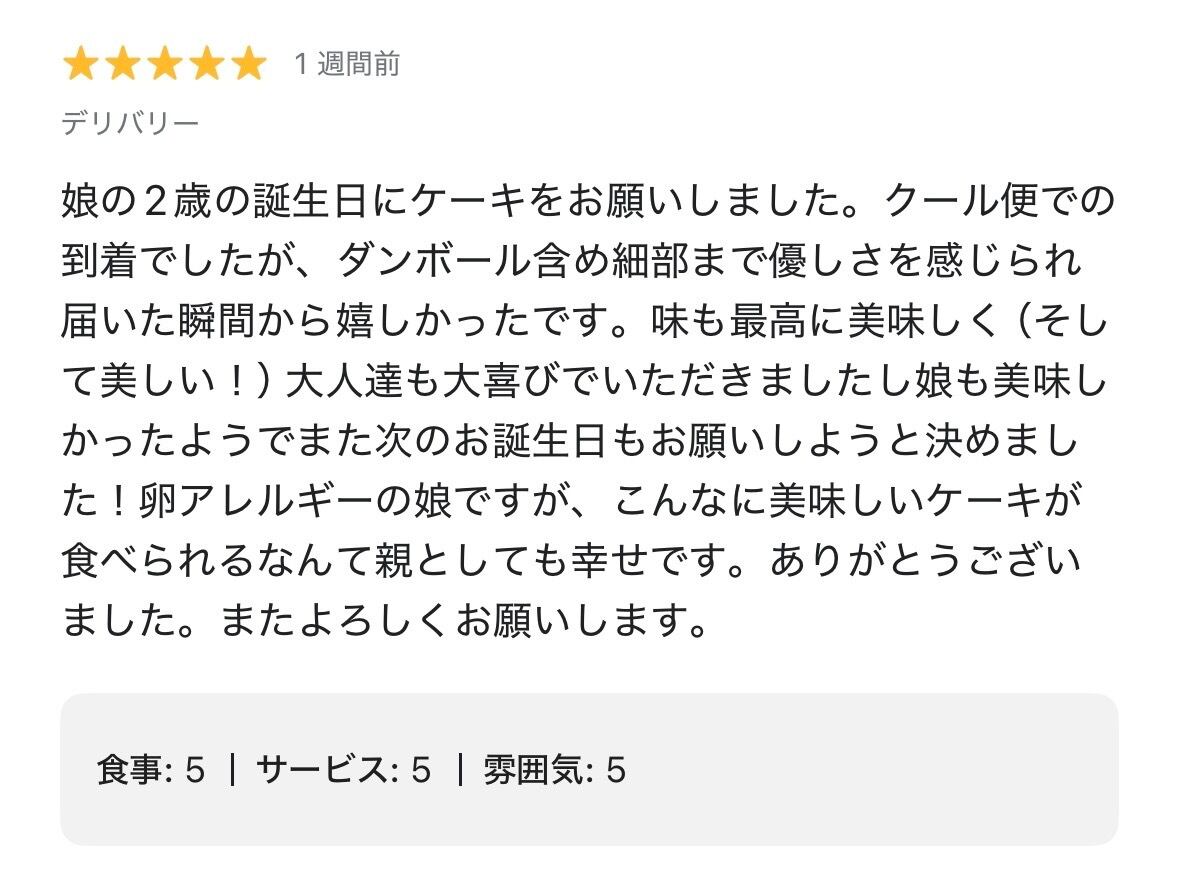 いちごみるくケーキをご注文してくださったお客様方のクチコミを一部ご紹介させて頂きます