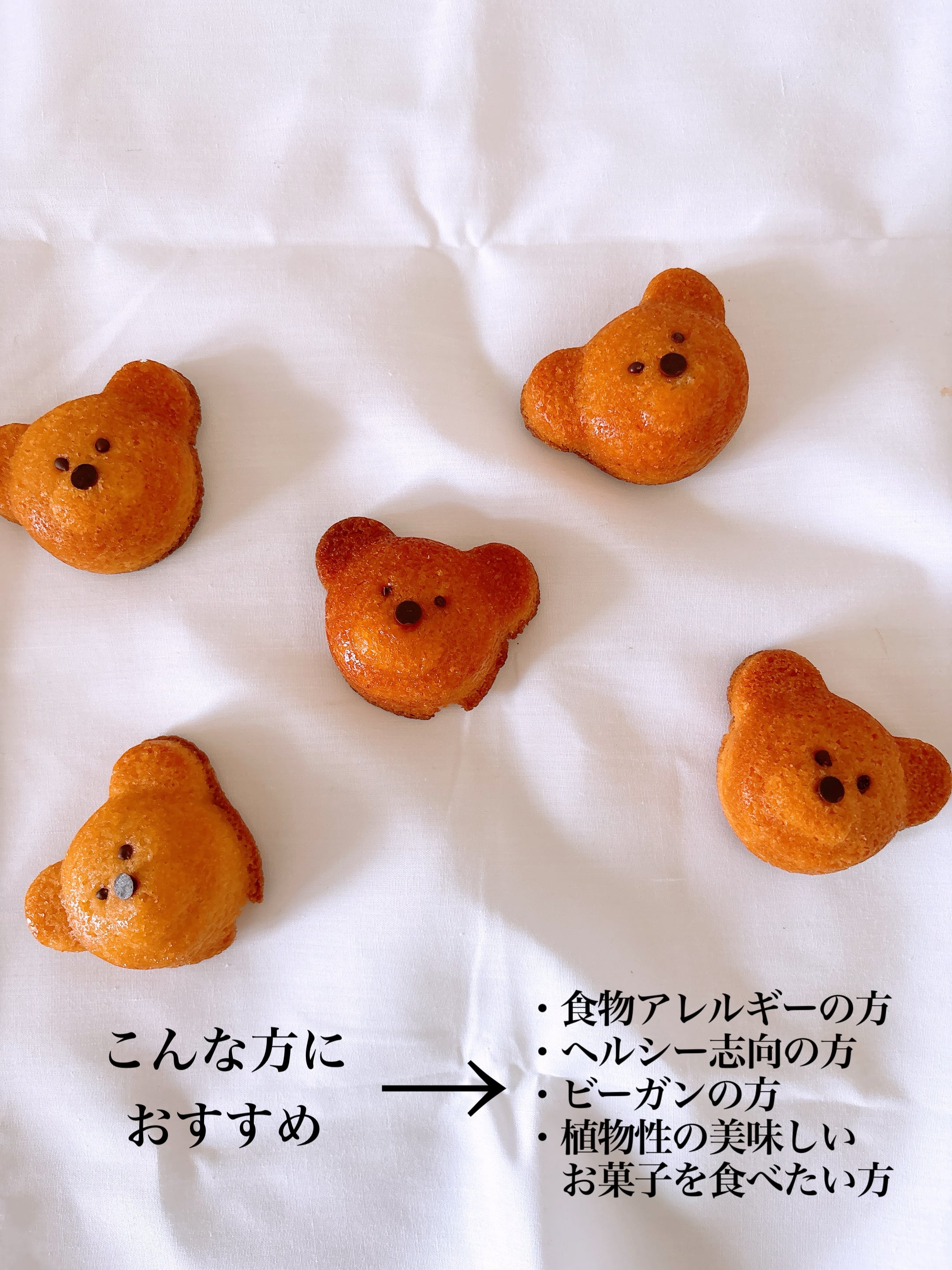【乳・卵・小麦不使用】でも、しっとり感とかわいさ満点!